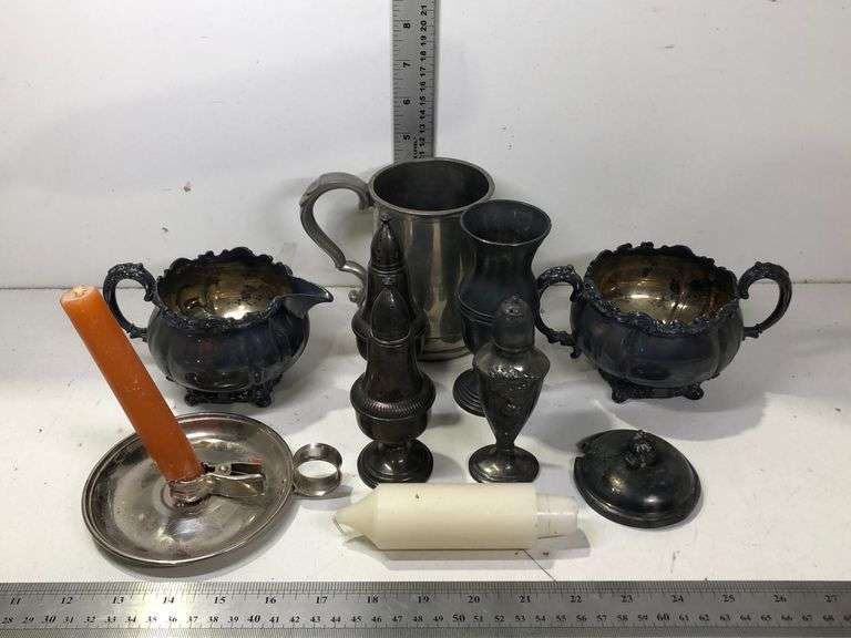 LOT 2515 - VINTAGE MISC. HOUSEHOLD ITEMS, APPROX 9 PIECES, MUG, SALT & PEPPER SHAKERS, SALT SHAKER, CANDLE HOLDER, LID, SMALL GOBLET