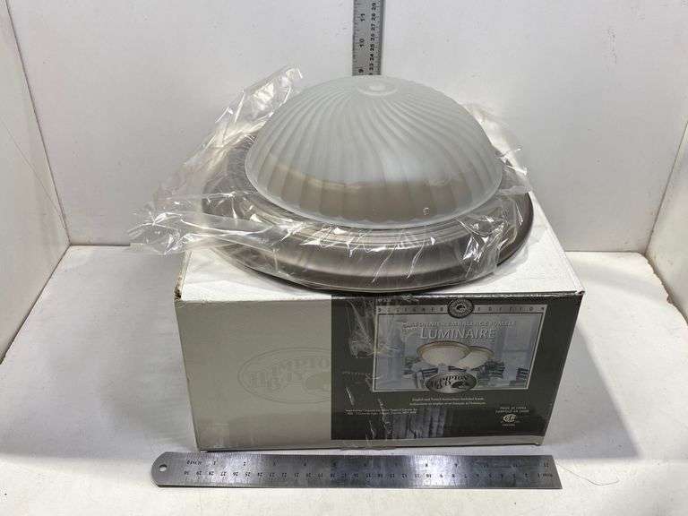 LOT 2903 - FLUSH MOUNT LIGHT FIXTURE, PWETER FINISH W/ GLASS, 100 W MAX, 12" X 4.5"
