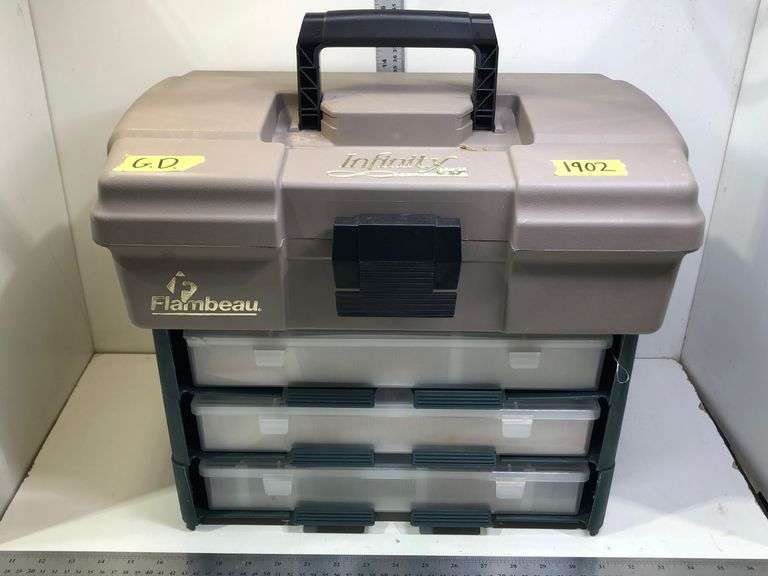 LOT 1902 - FLAMBEAU INFINITY SERIERS TACKLEBOX C/W FISHING SUPPLIES. Approx. 18" x 12" x 14".
