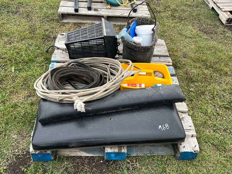 LOT 968 - 2 USED LARIATS ~ 25', TOW STRAP 3" X 10', SEAT CUSHIONS ~ 34" X 14" & 34" X 6", STINGER 120V BUG ZAPPER ~ 11" X 11" X 16"