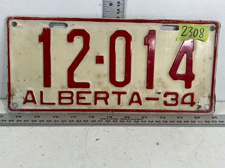 LOT 2308 - VINTAGE ALBERTA LICENSE PLATE, 1934