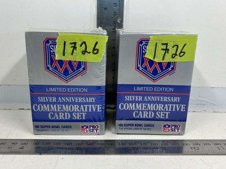 LOT 1726 - Super Bowl Cards, Limited Edition Silver Anniversary Commemorative Card Set, 2 boxes, ~ 160
