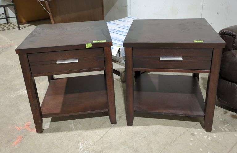LOT 1927 - 2 - End Tables w/ 1 Drawer and Shelf ~ 22" x 24" x 24 1/4"