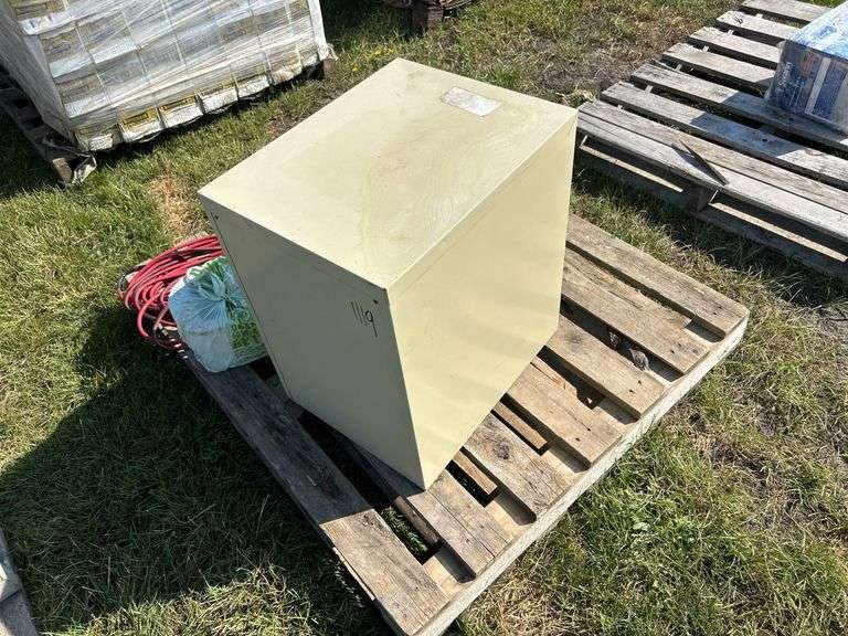 LOT 1119 - Filing Cabinet Approx. 1'3'' x 1'7'' x 1'10'', Approx. 100ft Extension cord, toaster