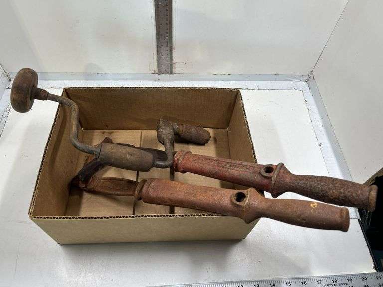 LOT 3094 - Vintage Hand Drill & 2 Vintage Hammer pullers
