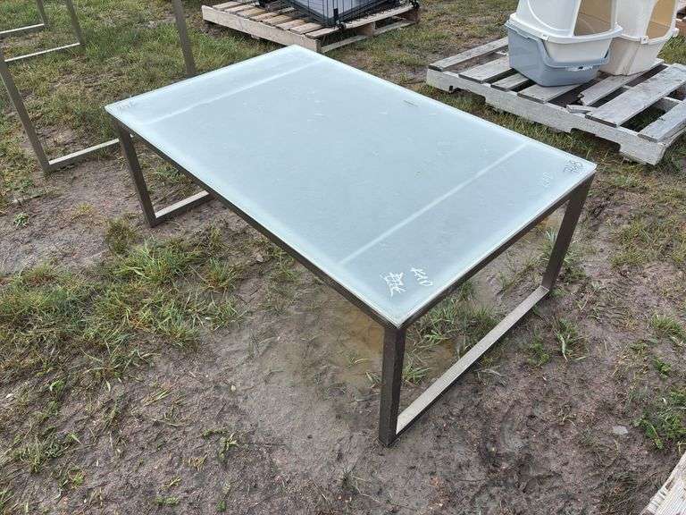 LOT 748 - Glass Top Patio Table Approx. 4' x 2'6'' x 1'6'' *Unreserved*