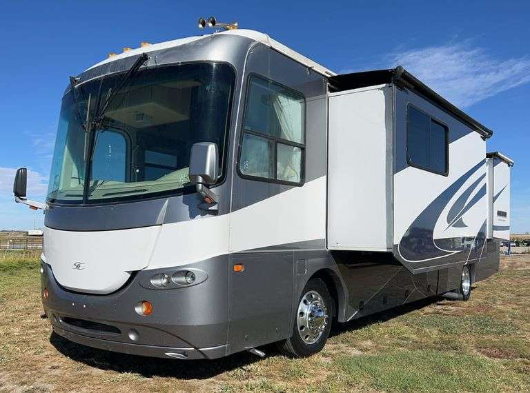 Owner States 2 Power Slides, Power Awning, Washer/Dryer, 2 TV's w/ Satellite, Queen Bed w/ New Bedding & Mattress, Serviced @ Peterbilt of Edmonton ( Air Ride & Slides Serviced ), New Tires, Service Records & Manuals in Office